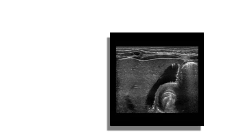 Increased through transmission is seen posterior to the gallbladder. The GB can be folded on itself in the shape of an S or have folds, a pouch in the fundus (Phyrigian cap) a pouch in the neck (Hartman’s pouch) and mucosal projections in the cystic duct (spiral valves of Heister).